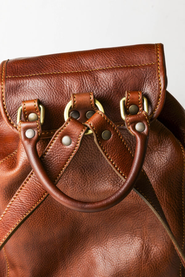 Borsa zaino in pelle 100% cuoio italiano. Lo zaino da donna in pelle si caratterizza per una forma a sacca con filo di pelle elastico che ne permette l’apertura e chiusura. All’interno troviamo una tasca con cerniera zip. La parte esterna si compone di una chiusura con finitura in fibbia metallica. Inoltre, nella parte bassa troviamo due tasche in rilievo con chiusura in clip metallica e finitura in fibbia metallica. Nella parte posteriore troviamo due bretelle regolabili, così da portare lo zaino comodamente. Lo zaino da donna in pelle Livorno è una borsa comoda, che offre uno stile ricercato all’outfit femminile. 100% cuoio Made in Italy rendono il prodotto estremamente pregiato. Caratteristica della borsa zaino in pelle: 100% cuoio Toscano con interni al 100% in cotone.