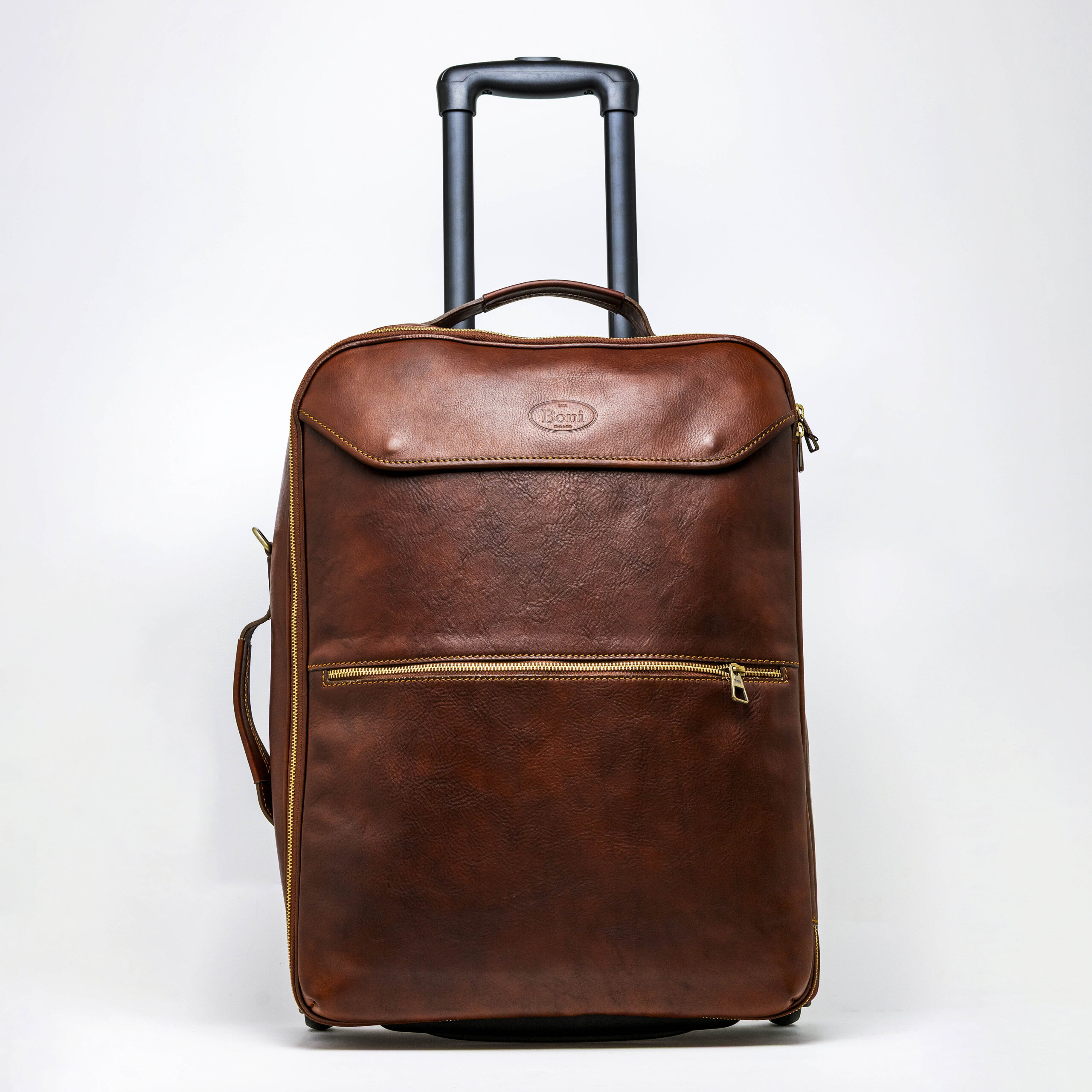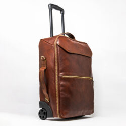 Il trolley è un prodotto di alto artigianato, realizzato in cuoio toscano conciato al vegetale e tamponato a mano. Ideale sia per viaggi di lavoro che per le vostre vacanze, ha una comoda tracolla che permette di portarlo anche a spalla all’occorrenza. Sono presenti due comode tasche anteriori, una maniglia laterale e due ruote.